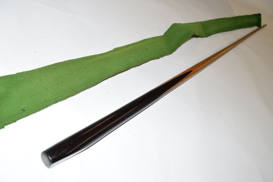 Vintage cue originally belonging to and used by Sydney Lee, together with a green cloth bag.