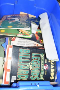 Large box assorted snooker and billiards ephemera, programmes, magazines, etc
