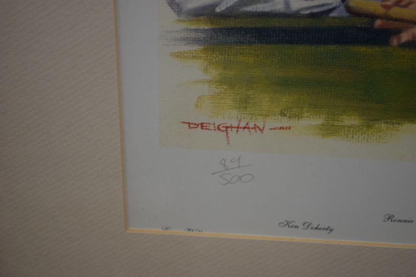 After Peter Deigham, Kings of the Bays Mk II, coloured print set in gilt frame
