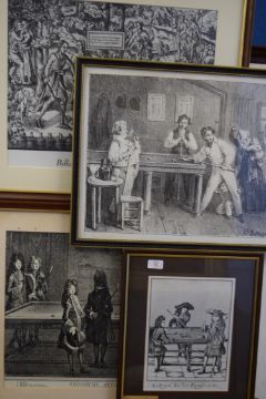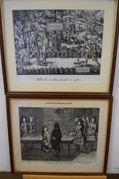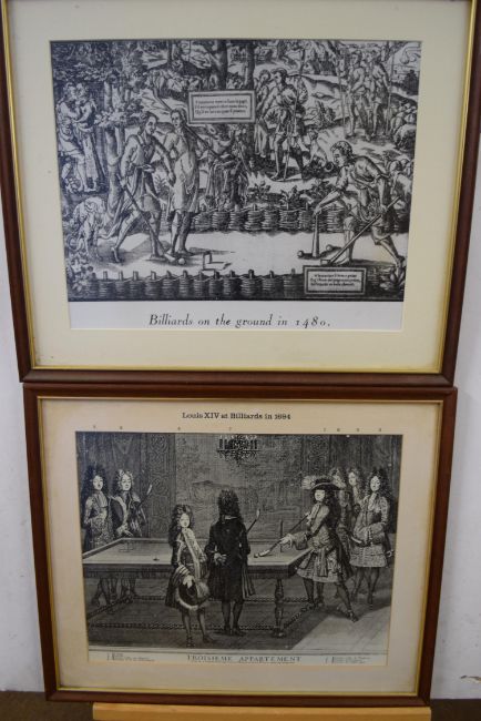 Mixed Lot of four reproduction black and white prints of billiards, three with French titles, various sizes, all f/g, largest 64cm wide (4)