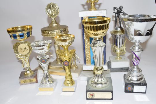 Group of eight various trophies, largest 47cm high