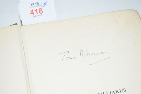 TOM NEWMAN: ADVANCED BILLIARDS with portrait of the author and 110 illustrations from photographs and diagrams, pub John Long Ltd, Haymarket, signature of author to cover page