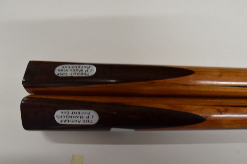 Two very rare J P Mannock anti-grip cues - circa 1905
