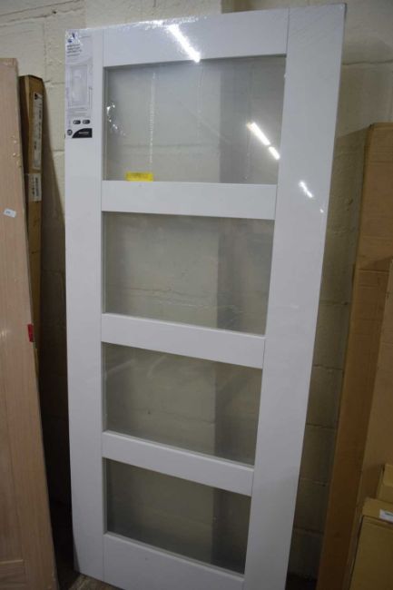 White primed Shaker four light glass door with clear glass, 84 x 200cm