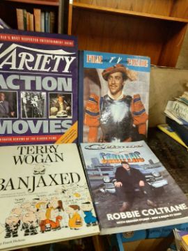 11 of mainly large format film related books to include Preview Film Album, Coltrane in a Cadillac by Robbie Coltrane etc [our ref: 412b]