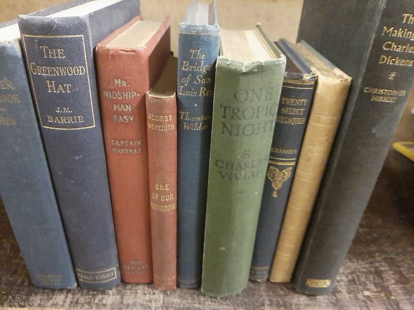 17 Mainly early 1st edition literature books to include The Greenwood Hat by J M Barrie, A Bachelors Comedy by J E Buckrose, One Tropic Night by E Charles Vivian etc early and rare titles [our ref: 418b]