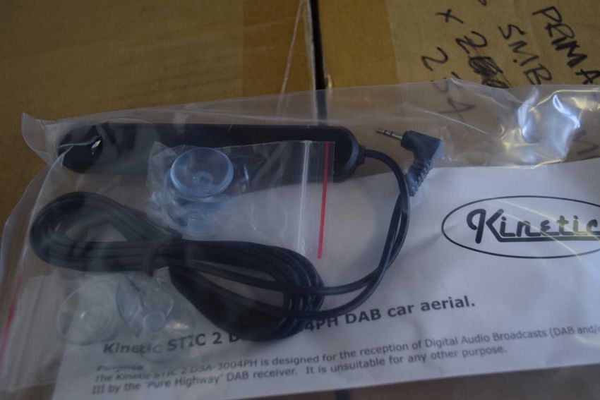 Box containing 100 Kinetic Stic 2 DSA-3004PH Internal Glass Mount DAB Aerial with a 2.5mm Jack connection