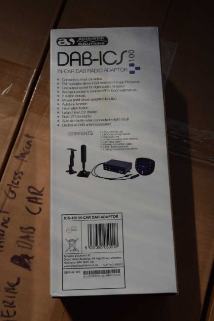 Box containing 4 DAB-ICS 100 In-car DAB Radio Adapter by Acoustic Solutions