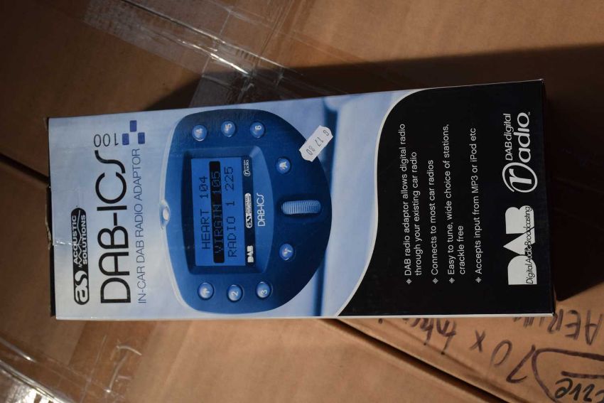 Box containing 4 DAB-ICS 100 In-car DAB Radio Adapter by Acoustic Solutions