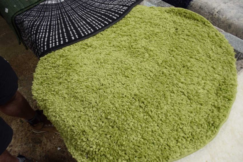 Tufted green floor rug, width approx 70cm
