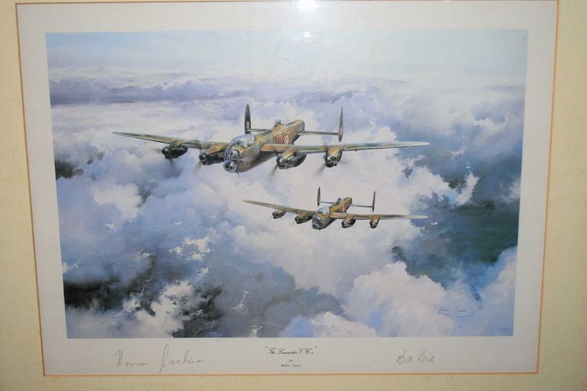 Robert Taylor (Amercan, 20th century), "The Lancaster V.C.s", chromolithograph, signed by Norman Jackson and Bill Reid in pencil to lower margin, framed and glazed.