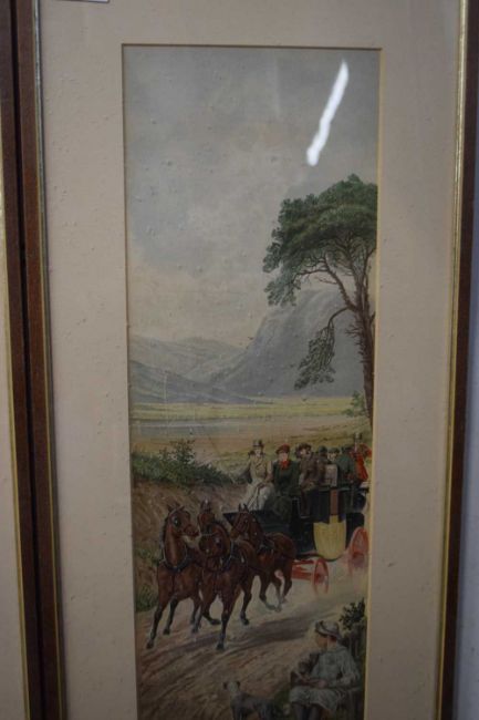 William Henry Tuck (British,19th century), a pair of horse and coach scenes, coloured engravings, signed and dated 1882, framed and glazed.