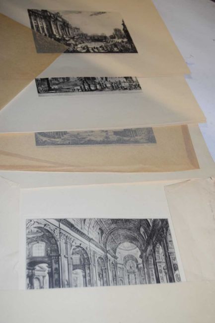 After Giovanni Battista (Italian,18th century) nine copper plate engravings from the 'Vedute di Roma' (Views of Rome) edition including,The Basilica; Piazza Navona and Veduta Del Tempio Detto Della Concordia (temple of concord). unframed