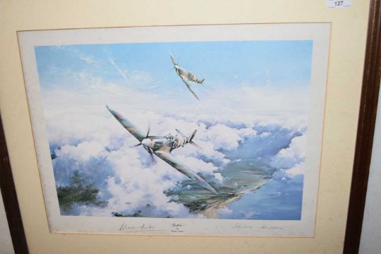 Robert Taylor (Amercan, 20th century), "Spitfire", chromolithograph, signed by Johnnie Johnson, and one other indistinguisable in pencil to lower margin, framed not glazed.