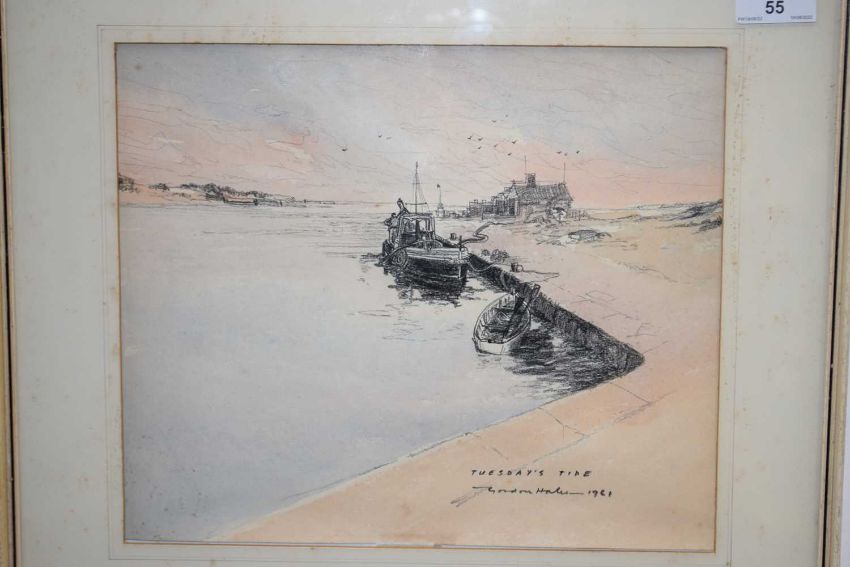 Gordon Hales (British, 20th century), "Tuesday's Tide", pencil and wash, signed and dated 1961,10x12ins, framed and glazed