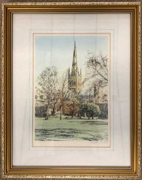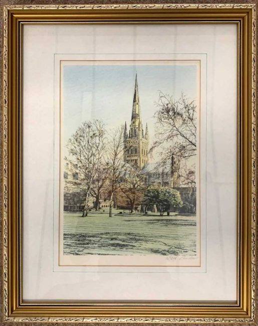 Nigel Carder (British, 20th century) Norwich Cathedral, chromolithograph, framed and glazed.