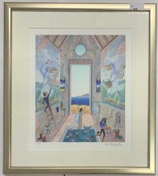 Thomas McKnight (British, 20th century), 'Temple of the Graces', giclee, limited edition, numbered (22/100) and signed in pencil, 9.5ins x 11.37ins, framed and glazed.