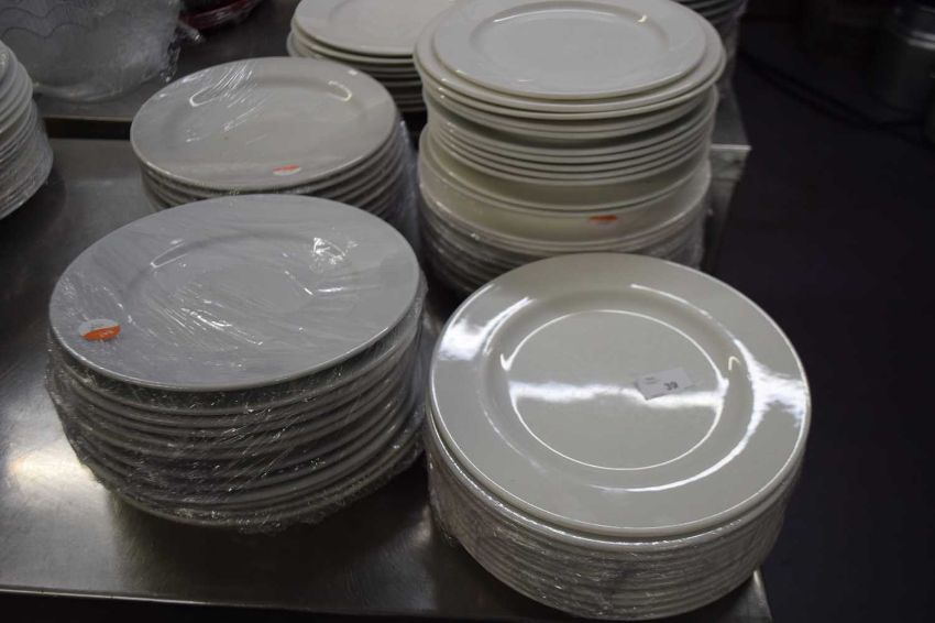 Large quantity of mixed serving plates