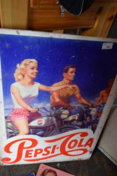 Quantity of mixed enamel and tin advertising signs to include Schweppes, Coca Cola, Pepsi, Fosters etc