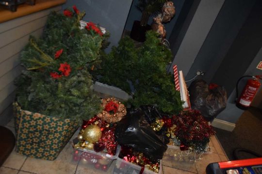Large quantity of Christmas decorations together with Christmas trees, garlands etc