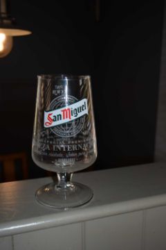 Box containing 12 San Miguel branded pint glasses