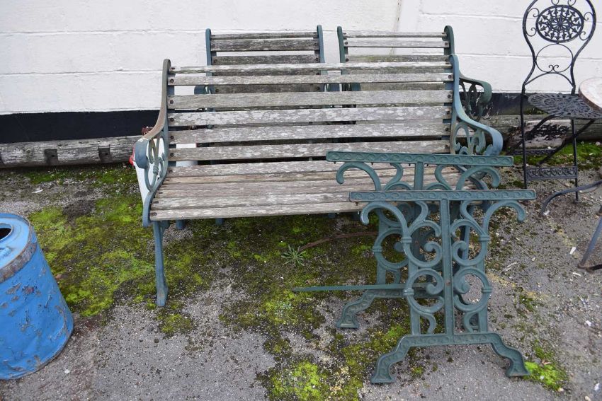 Cast iron garden set together with two chairs including a set of cast table ends