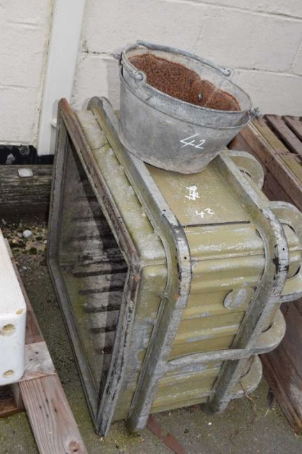 Galvanised feed bin/planter, height approx 50cm, width approx 75cm