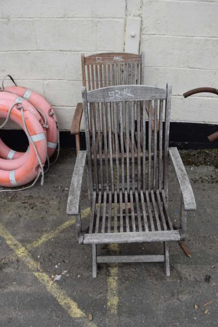 Two teak garden chairs