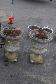 Two composite garden urns/planters, height 50cm