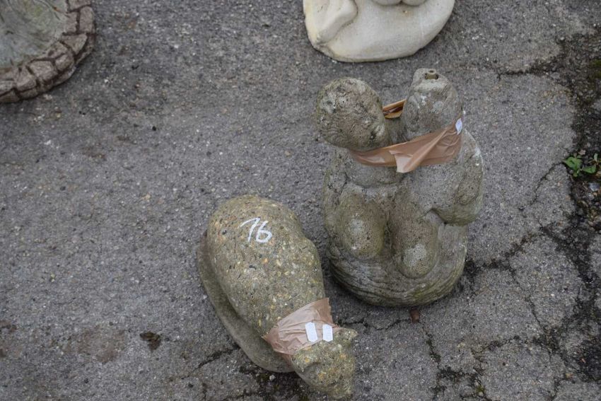 Two decorative garden statues, the tallest being 30cm