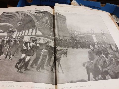 Box of ephemera to include The Illustrated London News 1901, plus a large format book The Windsor Years rare ephemera collections (214)