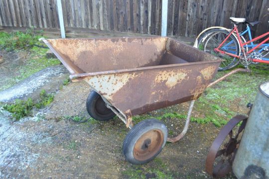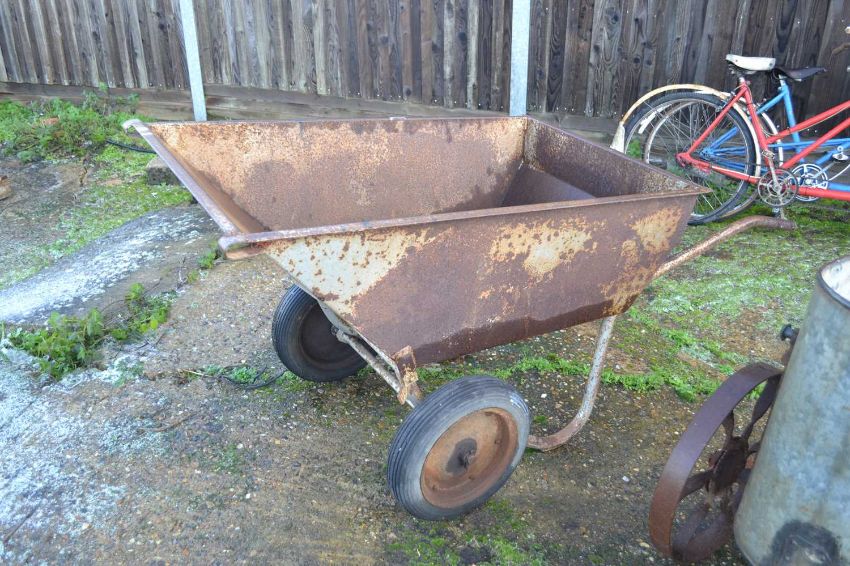 Large vintage wheelbarrow, overall height approx 84cm, overall length approx 180cm