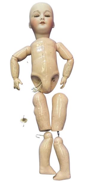 A timed auction of antique and vintage dolls, doll parts and accessories, from a single vendor collection.