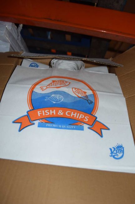 Box of Jumbo White Fish & Chip Takeaway Bags, approx 100 pieces