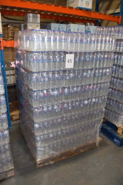 Pallet of bottled water, approx 2300 x 500 mm bottles with an expiry date of 26.10.23
