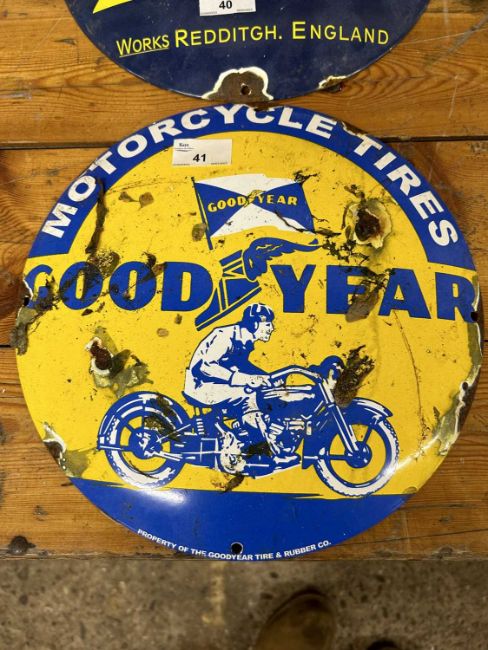 A Goodyear Motorcycles enamel sign, width approx 30cm