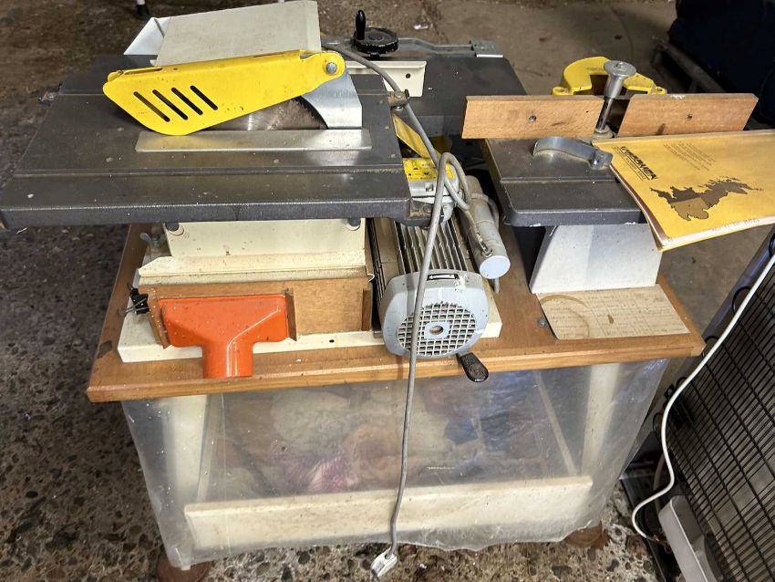 Multi work station to include router, plane, and bench saw.