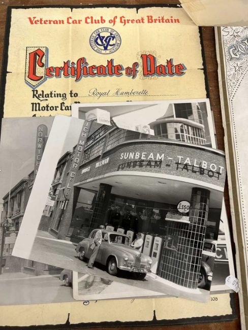 Mixed lot of automobila to include, orginal photographs of the Norwich Motor Company Ltd, 2 veteran car club certificates and 2 mounted punch prints. (7)