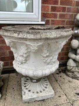 A pair of composite garden urns, height approx 65cm, width approx 60cm