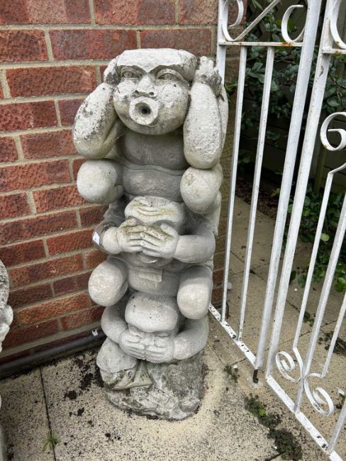 Composite garden statue, Hear no Evil, See no Evil, Speak no Evil, height approx 100cm (a/f)