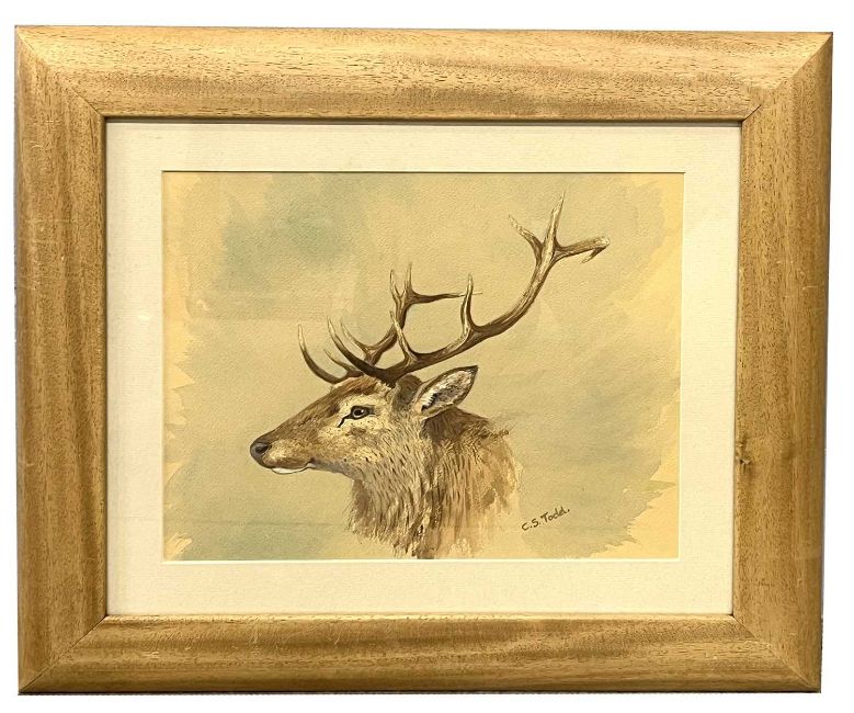 Charles Stanley Todd (British,1923-2004), a study of a deer stag head, pencil, watercolour and gouache, signed, frame mounted, framed and glazed.