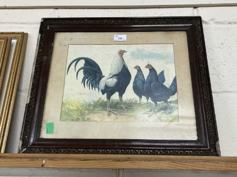 After British School, Game Hens, chromolithograph, unsigned, 32x25cm, framed and glazed.