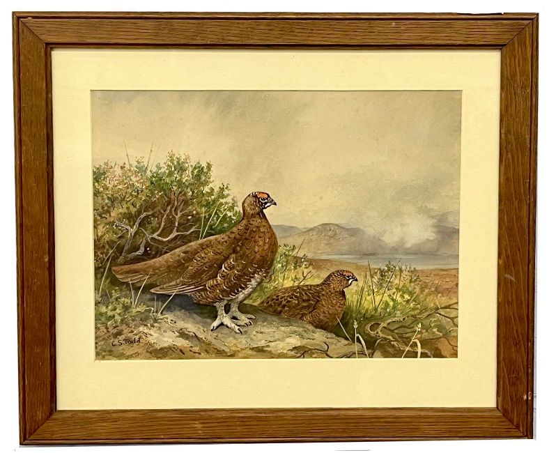Charles Stanley Todd (British,1923-2004), a pair of red grouse, watercolour and gouache, signed, frame mounted, framed and glazed, 12x9.5ins, 17x15ins inclusive of frame.