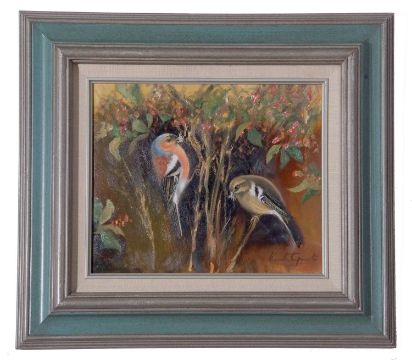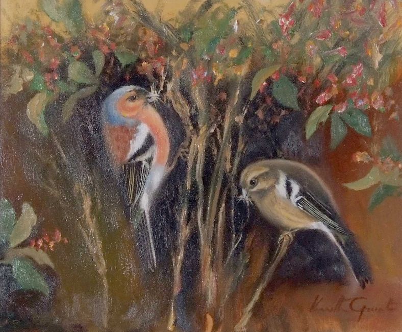 Kenneth Grant (British, 20th century), A pair of garden bird studies, one of a Dunnock perched, (2), oil on canvas, signed, 8 x 10ins (largest), framed.