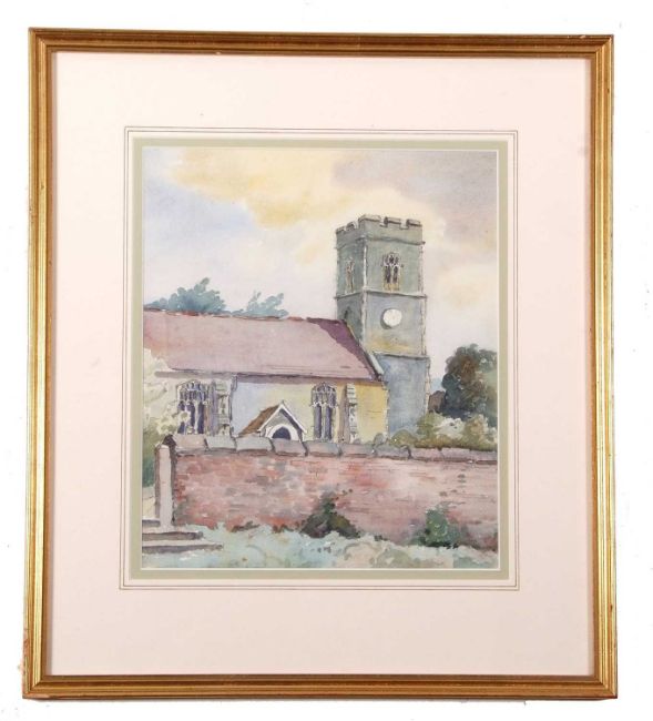 Jack Goddard (British,1902-1984), Suffolk Church Tower, watercolour, unsigned, inscribed on verso: 'obtained from his widow', 27x32cm, framed and glazed