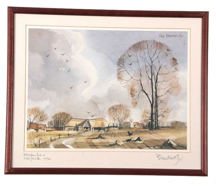 Hugh Brandon Cox (British,1917-2003), "November, Norfolk", limited edition coloured print, numbered 42/120, titled and signed in pencil, 33x41cm, framed and glazed.