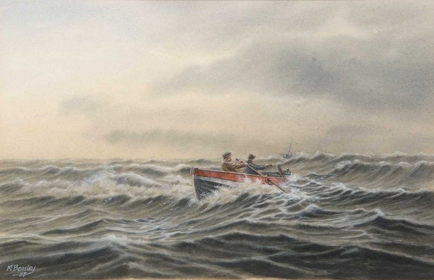 Michael Bensley (British, b.1959), "Heading for Harbour", watercolour, signed and dated '88, 9x14ins, framed and glazed.