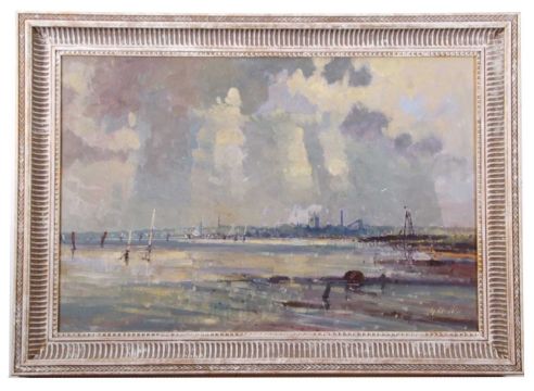 Geoffrey Chatten (British, b.1938), Halvergate / Reedham, oil on board, signed, 23x35ins, framed