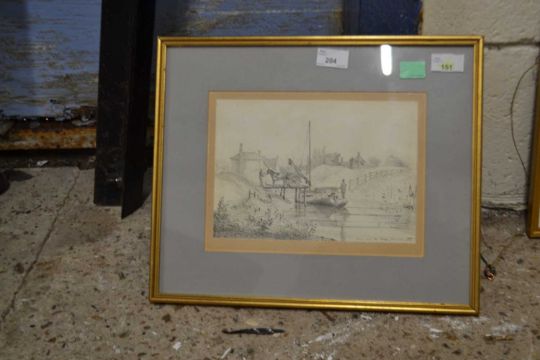 Thomas Preston RA (British, b.circa 1800), "A View near the Ferry, Norwich", pen and ink, inscribed and dated 1831, "FRY", London, label on verso.