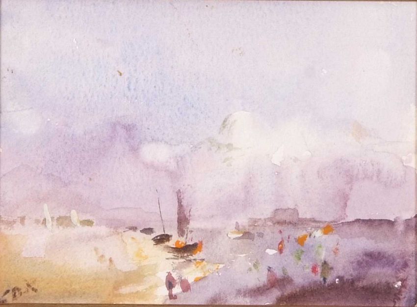 Jack Cox (British, 20th century), Coastal watercolour, signed,12x17cm, framed and glazed.